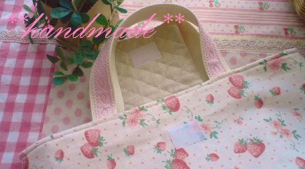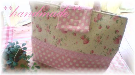 とコメント貰っていたので、赤いドットと赤い苺の生地を使って