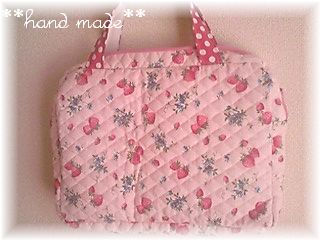 以前かったイチゴのキルト生地を使っちゃいました。。。。。