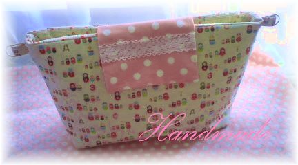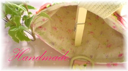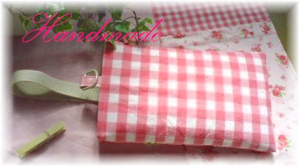 裏はピンクチェック一色にしてみました。(一色使いがやっぱり簡単)